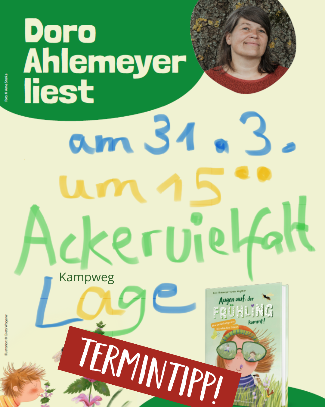 Vor allen Dingen, dass wir dieses Mal mit ihr zusammen dem Frühling beim Aufwachen zugucken dürfen. Wer also die Lesung im vergangenen Jahr verpasst hat … Ihr habt JETZT eine neue Chance 😉