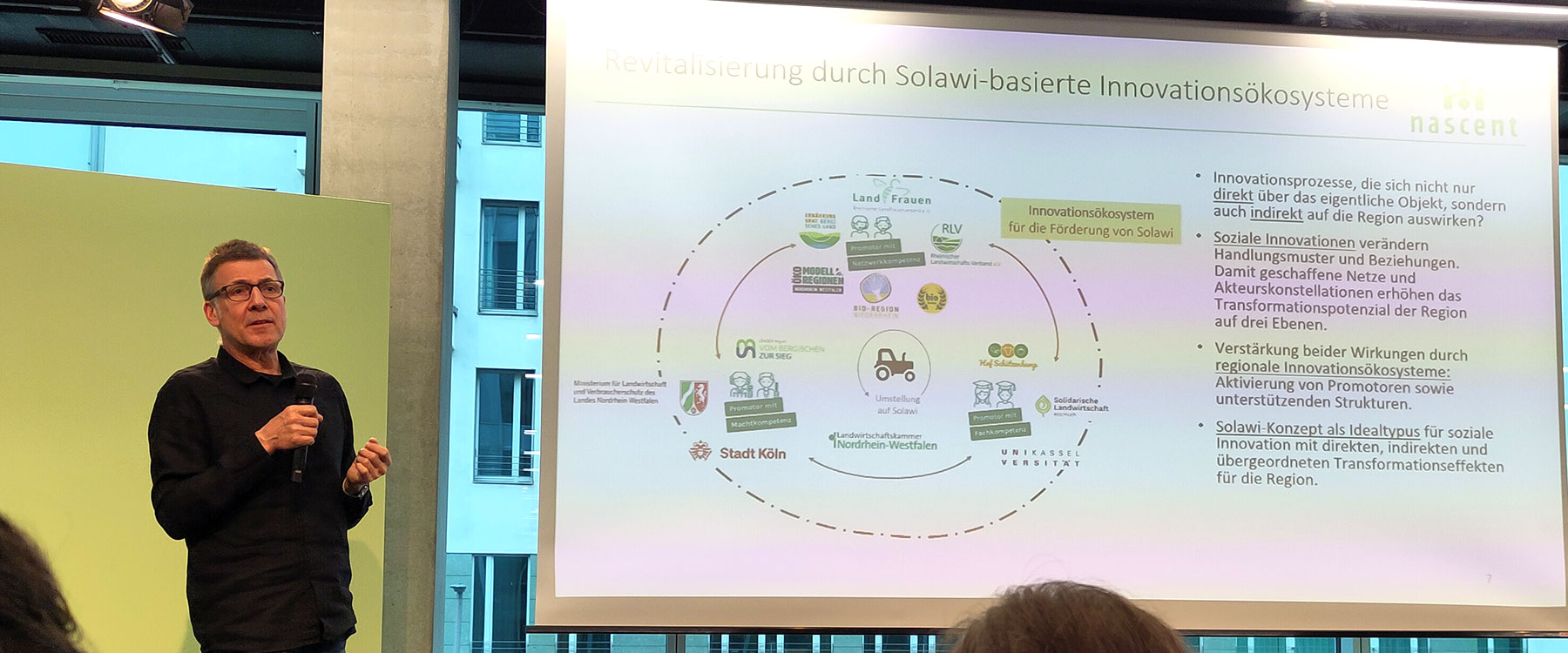 Das Forschungsprojekt nascent präsentierte im Rahmen des Fachtags seine umfassenden Ergebnisse: Solawi-Betriebe wirken als Katalysatoren für regionale Vitalität – von Ernährungssouveränität über sozialen Zusammenhalt bis zur Stärkung lokaler Innovationskraft.