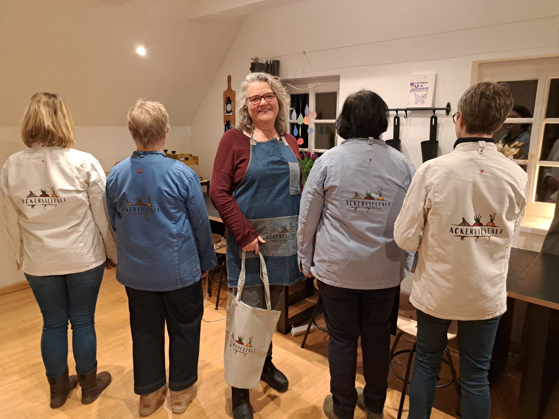 Anfang Februar besuchten Mitglieder unserer Solidarischen Landwirtschaft die wunderschöne Kunst- und Siebdruckwerkstatt MuscArt (https://www.muscart.de/) von Melanie Fliege auf dem Grutthof in Lage-Wissentrup. Dort wollten wir unser schönes Ackervielfalt-Logo auf Schürzen und Kochjacken unserer Verarbeitungsgruppe drucken,